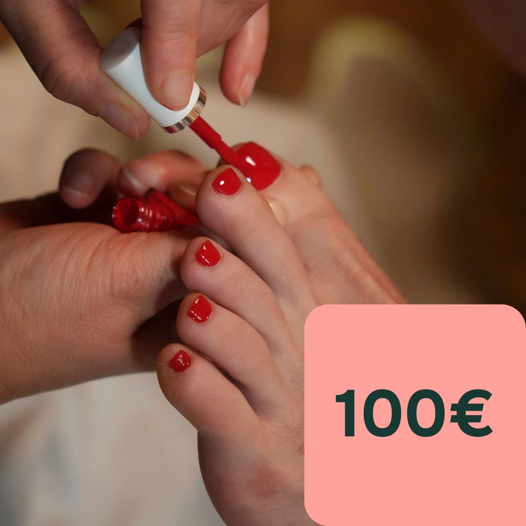 Hoito sisältää rentouttavan jalkakylvyn, kynsien hoidon, kovettumien poiston, nautinnollisen hieronnan sekä kynsien lakkauksen valitsemallasi pikkulakalla.